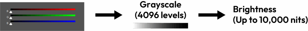 This results in true blacks and high-brightness whites, achieving contrast ratios of 1,000,000:1 or more.