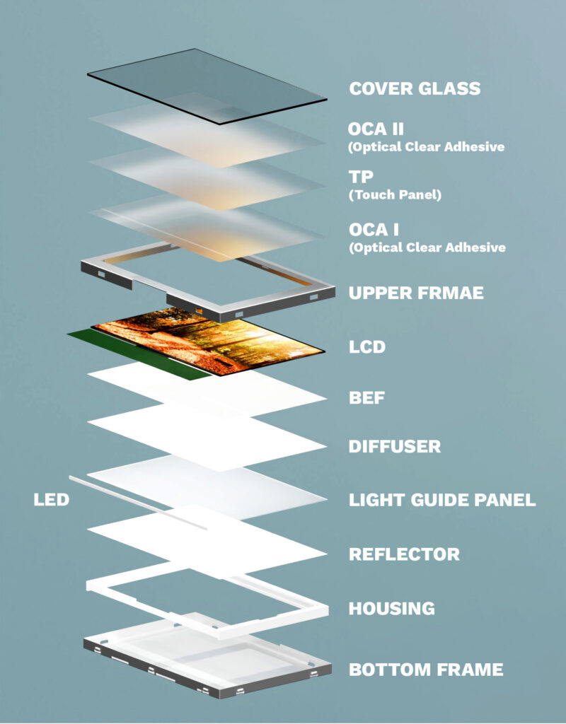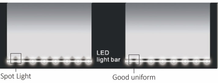 EB-LCM addresses this issue by designing and fabricating dotting patterns on the lightguide panel that eliminate hot spots, perfectly aligning with the LED pitch and shape of the LED strip.