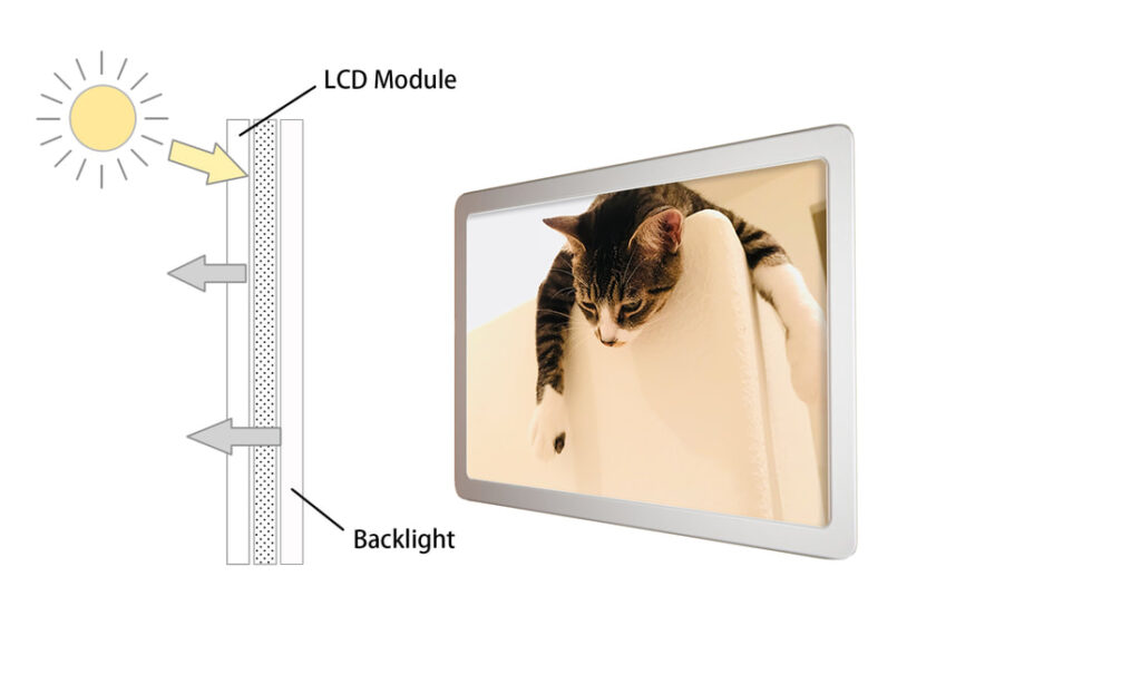 EB-LCM’s backlit technology provides 1000+ nits or even higher, making it suitable for outdoor use and visibility in strong sunlight. - Normal LCM brightness (250~350 nits):